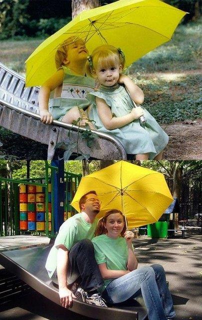 Geçmişte çekildikleri fotoğrafları taklit eden insanlar...