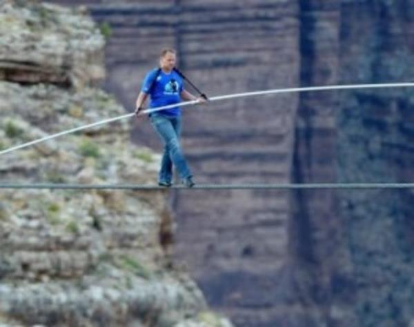 Büyük Kanyon'u ip üzerinde geçen ilk kişi olarak tarih yazan Wallenda, 450 metre yükseklikteki yürüyüşü sırasında herhangi bir emniyet ağı ya da güvenlik halatı kullanmadı.