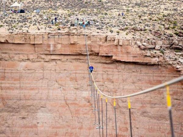 34 yaşındaki akrobat, Büyük Kanyon'daki gösterisinde de aynı çelik ipi kullandı.