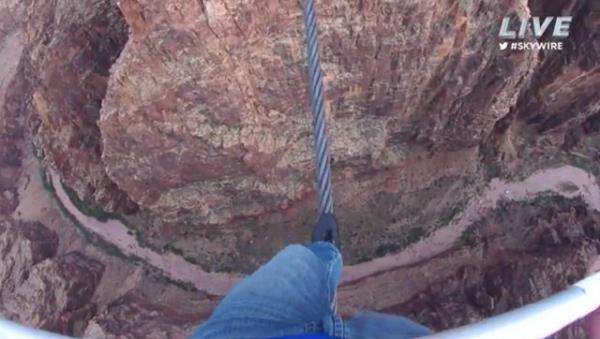 Nefes kesen gösterisi televizyonlar tarafından canlı olarak yayınlanan Wallenda, 426 metre genişliğindeki kanyonu bir uçtan bir uca 22 dakika 54 saniyede geçti.