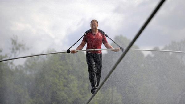 Brezilya’nın Rio de Janeiro kentine hâkim Pedra da Gavea kanyonunda düzenlenen İp Cambazlığı Festivali’nde gerçekleşen gösteride Dickey’in zaman zaman dengesini yitirecek gibi olması izleyenlerin yüreğini ağzına getirdi.