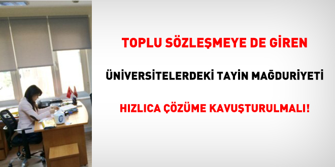 Üniversitelerdeki idari personelin tayin mağduriyetini çözüme kavuşması için büyük önem taşıyan toplu sözleşme hükmünün hayata geçmesi geciktirilmemeli!