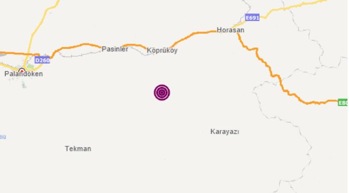 Afet ve Acil Durum Yönetimi Başkanlığının (AFAD) internet sitesinde yer alan bilgiye göre, saat 15.40'ta merkez üssü Erzurum'un Köprüköy ilçesi olan 5,1 büyüklüğünde deprem kaydedildi.