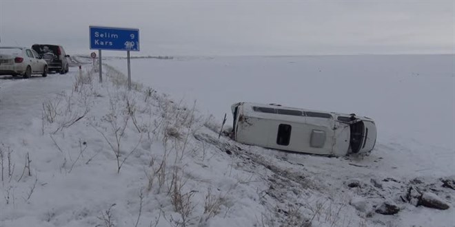 Ufuk Yaşar Erekinci idaresindeki 36 AE 500 plakalı köy minibüsü, Sarıkamış-Selim kara yolunun Asboğa köyü yakınlarında sürücüsünün, kar yağışı nedeniyle direksiyon hakimiyetini kaybetmesiyle şarampole devrildi.