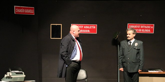 Cumhuriyete sıkı sıkıya bağlı Komiser Ramazan'ın doğruluk, adalet ve dürüstlük ilkelerinden taviz vermeyişi ve bu tutumu nedeniyle başına gelenlerin anlatıldığı oyun sırasında, İl Emniyet Müdürü Yılmaz, protokolden kalkarak sahneye çıktı.