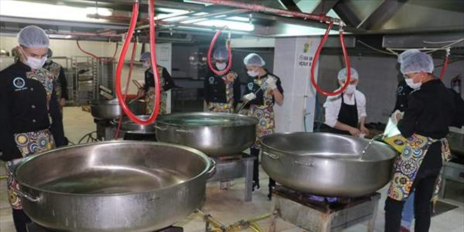 Turizm sektörüne otelcilik ve yiyecek-içecek hizmetleri alanında ara eleman yetiştiren okul, kentte 92 noktada eğitim gören öğrencilere sıcak yemek ulaştırıyor.