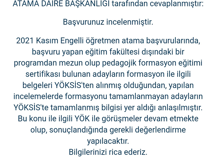 Fakat sosyal medya gruplarında yapılan yerleştirme işlemlerinde formasyonu olmayan kişilerin de atamasının yapıldığı belirtilmişti.