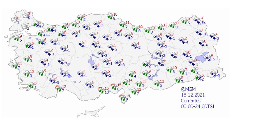 Cuma günü başlayan kar yağışı cumartesi ve pazar günü de etkisini sürdürecek. Rapora göre aralarında İstanbul ve Ankara'nın da olduğu 47 ilde kar yağışının etkili olacak. Kar yağışı beklenen diğer illerse şöyle;