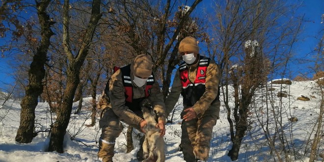İlçe Jandarma Komutanlığı ekipleri, Çobanpınar köyünde devriye görevi esnasında aç ve donmak üzere olan yavru köpeği farkt etti.