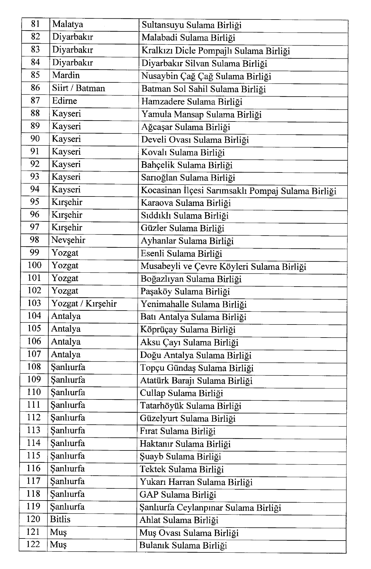 MADDE 2- (1) 6172 sayılı Kanun hükümlerine istinaden faaliyette bulunan sulama birlikleri ekli (1) sayılı Cetvelde gösterilmiştir.