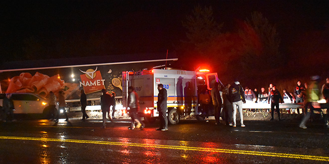 Jandarma ekipleri kaza yerinde geniş güvenlik önlemi alırken, yoldan savrulan otomobil ile tır çekici vasıtasıyla kaldırıldı.