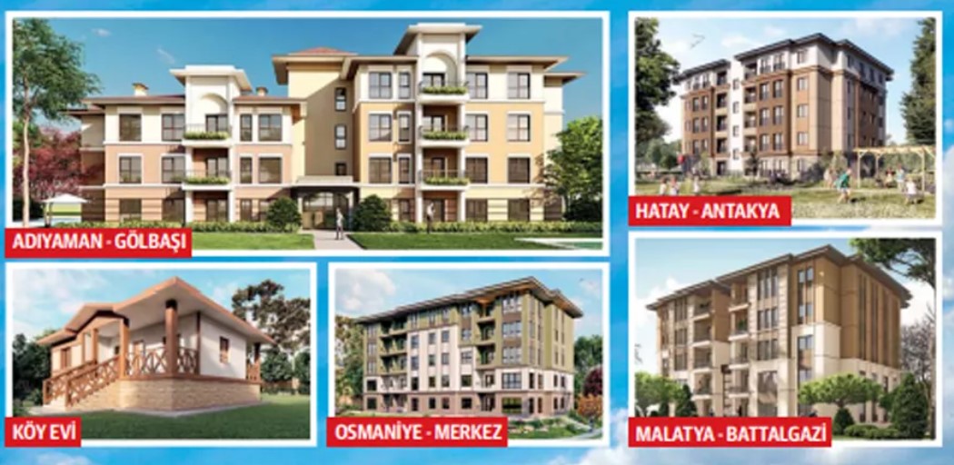 Konutları TOKİ koordinasyonunda Emlak Konut, Yapı İşleri Genel Müdürlüğü ile birlikte yapılacak. 11 ilde sosyal donatıları hazırlanmış, altyapısı tamamlanmış 319 bin konut, toplamda ise 650 bin konut inşa edilecek. Çevre, Şehircilik ve İklim Değişikliği Bakanlığı yapılan konutların projelerini de yayınladı. Konutlar yatay ve yerel mimariye uygun olarak inşa edilecek.