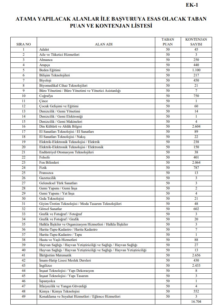 Özer, atama yapılacak alanlara başvuru için 50 taban puanın esas alındığını ifade etti.