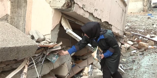 Alparslan'ın yaklaşık 25 bin kitabının bulunduğu kütüphanesi de depremde tamamen yıkıldı. Çocukları ise babalarından kalan bu eserleri kurtarmak için seferber oldu.
