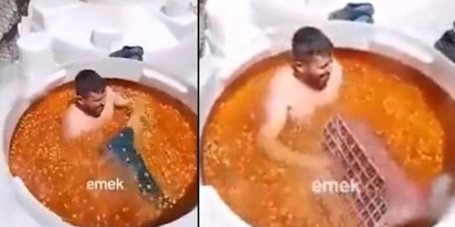 Manisa'da bir kişi çıplak halde girdiği tankın içinde zeytinleri sepetledi. O anların sosyal medyada tepki toplamasıyla Tarım ve Orman Bakanlığı, inceleme başlattığını duyurdu.