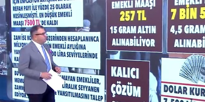 Gazeteci Cem Küçük, emekli maaş zamlarıyla ilgili dikkat çeken bir habere imza attı. Emekli maaşlarını masaya yatıran Cem Küçük, en zor durumda olan kesimin emekliler olduğunu belirtip, "2002'de emekli maaşıyla 15 gram altın alınırken, şimdi 4.5 gram altın alınıyor. Ocak ayında emekli maaşı 400 dolarken şimdi 275 dolar" dedi ve emeklilere zam istedi.