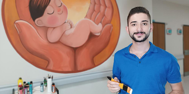 edilen Biçer, bu kez hastanenin çeşitli yerlerine resimler çizmeye başladı.