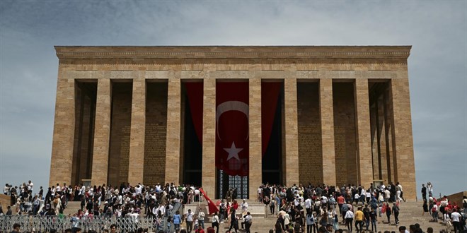 Anıtkabir'in Akdeniz ve Anadolu kapılarının girişinde bekleyen her yaştan binlerce vatandaş, ellerindeki Atatürk posterleri, Türk bayrakları ve çiçeklerle Ata'sını ziyaret etti.
