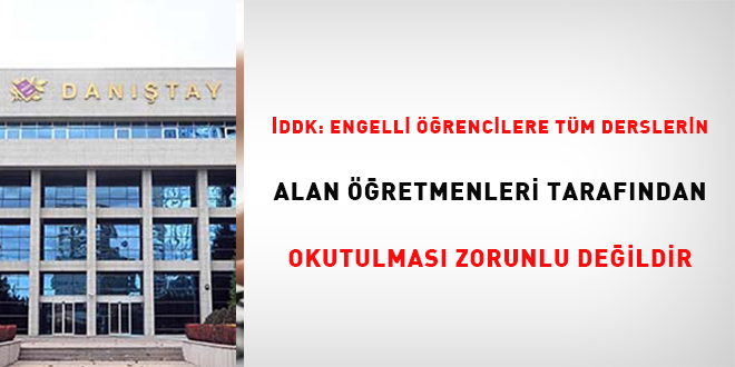 Danıştay İdari Dava Daireleri Kurulu, İlkokul çağındaki öğrencilerin engel durumuna göre din kültürü ve ahlak bilgisi ile yabancı dil dersinin alan öğretmenleri tarafından okutulmasına rağmen beden eğitimi, görsel sanatlar, müzik derslerinin özel eğitim öğretmenleri tarafından okutulmasının engelli öğrencilerin eğitim hakkını kısıtlamadığı, hayat boyu eğitim imkanı yönünden ayrımcılığa neden olmadığına hükmetti.