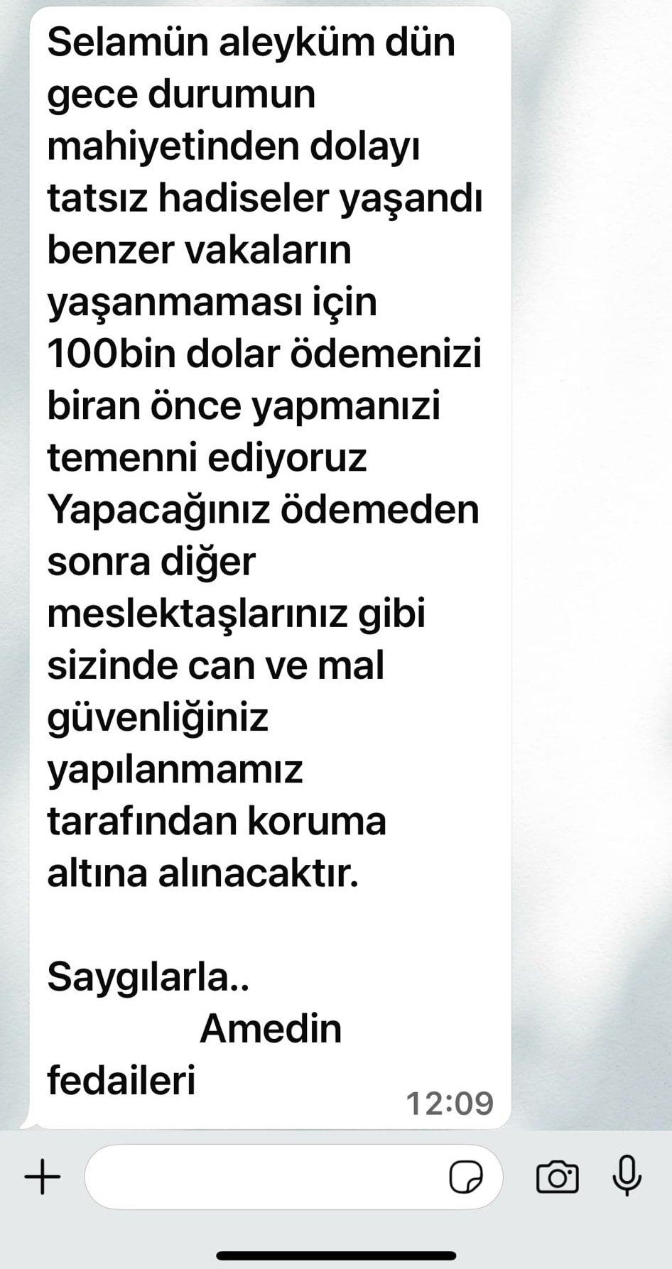 Gece saatlerinde meydana gelen olayda, kimliği belirsiz kişiler tabancalarla kuyumcuya ateş açtıktan sonra kaçtı. Ardından kuyumcuya yabancı numaralardan mesaj gönderen saldırganlar, "Benzer hadiselerin yaşanmaması için 100 bin dolar ödemenizi temenni ediyoruz. Ödeme sonrası diğer meslektaşlarınız gibi can ve mal güvenliğiniz koruma altına alınacaktır" ifadeleriyle tehditte bulundu.