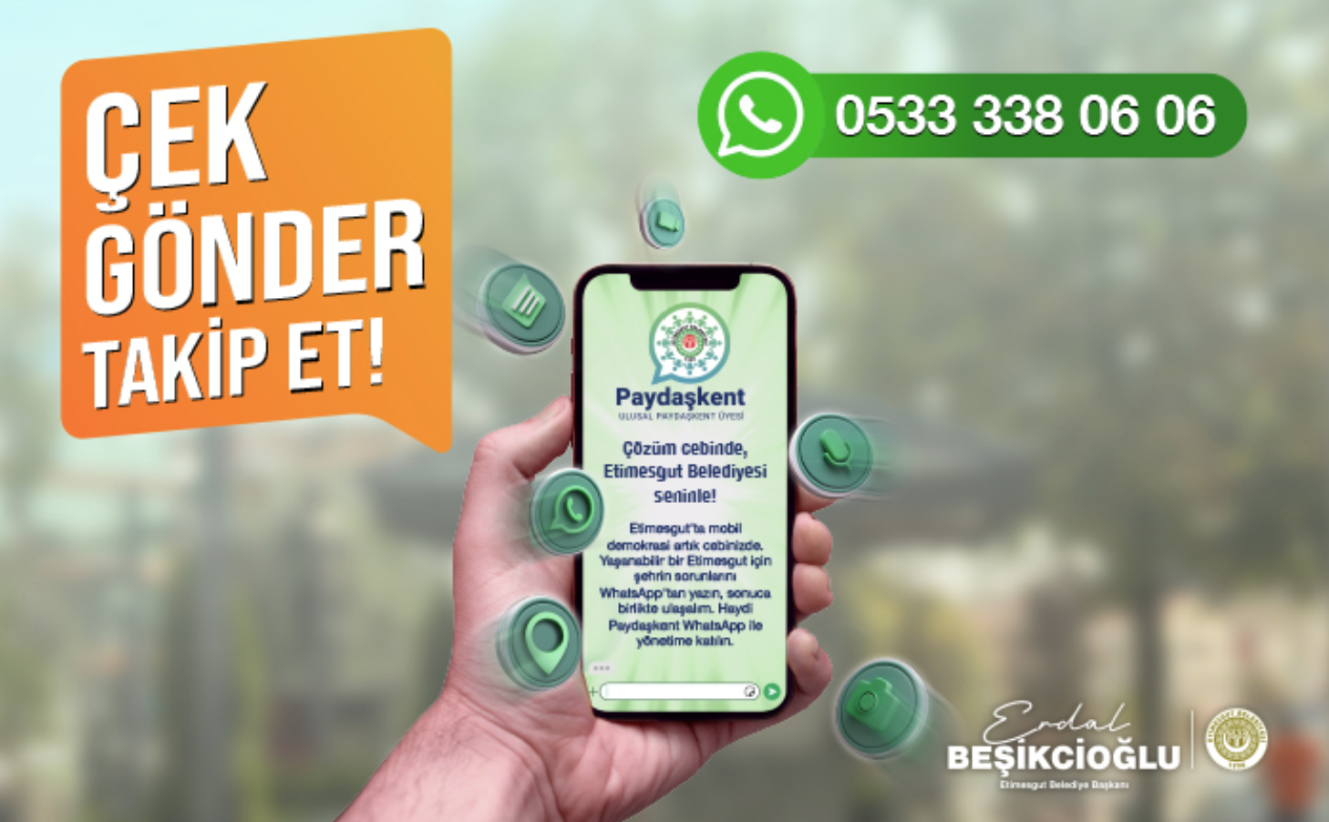 Etimesgut Belediyesi, yerel yönetimle vatandaş arasındaki iletişimi güçlendiren ve sorunları anında çözen devrim niteliğinde bir dijital hizmeti hayata geçirdi: Paydaşkent WhatsApp Hattı. Bu yeni sistemle Etimesgutlular, artık kent yönetimine doğrudan seslerini duyurabilecek.