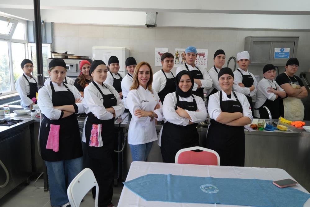 Yiyecek İçecek Hizmetleri Alan Şefi Aslı Sertbaş, bölümlerine olan ilginin yoğun olduğunu belirterek, "Tüm sınıflarımız kapasite olarak doludur. Rağbet gören bir bölümdür. Öğrenciler 10 ve 11 sınıfın yazında staja gidiyorlar. Otellerde 5 buçuk 6 ay staj yapıyorlar. Bizlerin proje ortağı olan oteller var. Antalya'da, Bodrum'da yeri geliyor Erasmus projeleri ile Almanya'da İtalya'da, Belçika'da öğrencilerimiz staj yapıyor. Direk sektörün içerisinde hazırlanmış oluyorlar. Sonrasında bu öğrencilerimiz sektörde çalıştıkları için sektörden çok talep görüyorlar. Öğrencilerimiz yiyecek, içecek bölümü öğrencileri oldukları için mutfaklarda aşçı olarak çalışıyorlar. Sonrasında yükselebiliyorlar. Yine servis personeli olarak çalışabiliyorlar. Öğrenciler 5 yıldızlı otellerde, restoranlarda görev alabiliyor" dedi.