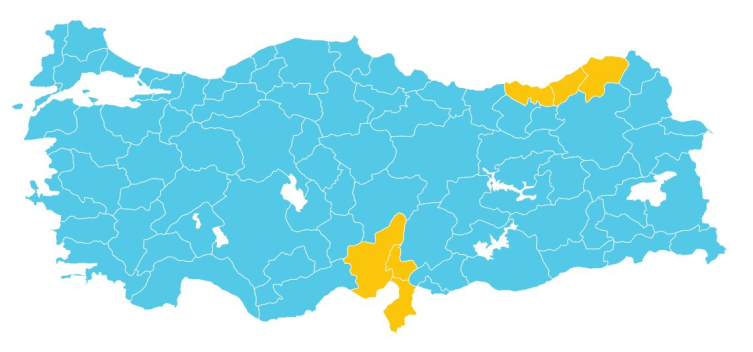 Meteoroloji'nin sarı kodla uyardığı 6 il ise şöyle: