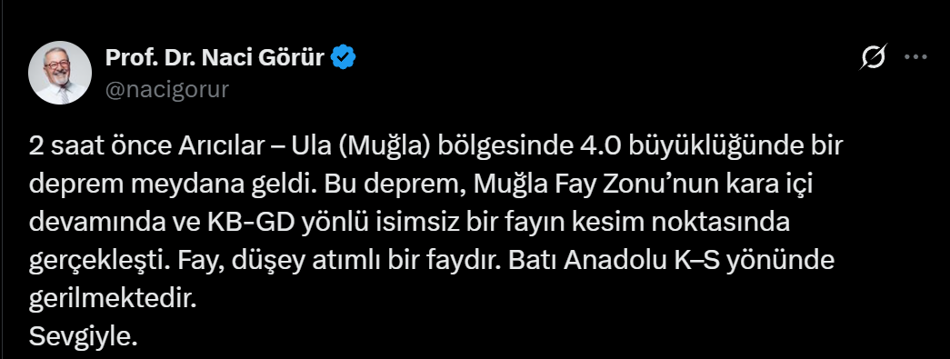 Köyceğiz'de 4,1'lik deprem: Prof. Dr. Görür'den açıklama