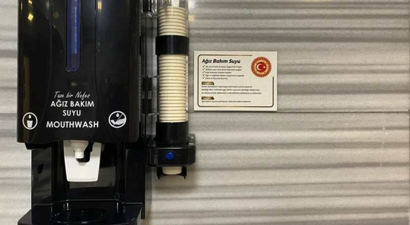 Yerleştirilen ağız bakım suyunda alkol ve flouroid bulunmamasına dikkat edildi. Makinenin yanında, ağız bakım suyunun nasıl kullanılacağını anlatan bilgi kartı da bulundu.