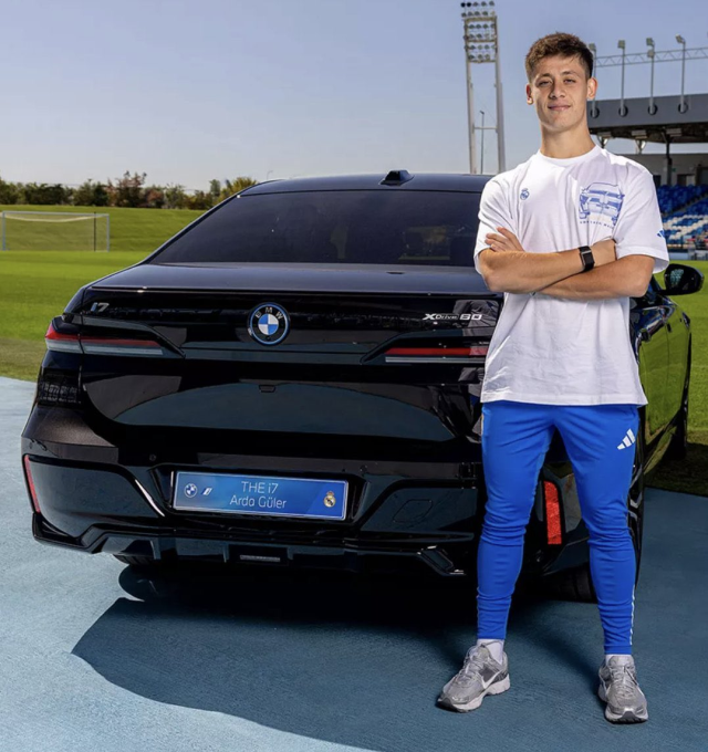 Real Madrid'in sponsorlarından BMW, Eflatun-beyazlı tüm takıma elektrikli araçlarından hediye etti. Milli futbolcu Arda Güler'in seçtiği aracın değeri dudak uçuklattı. Aracın Türkiye'de yaklaşık 13 milyon lira değerinde olduğu görüldü.