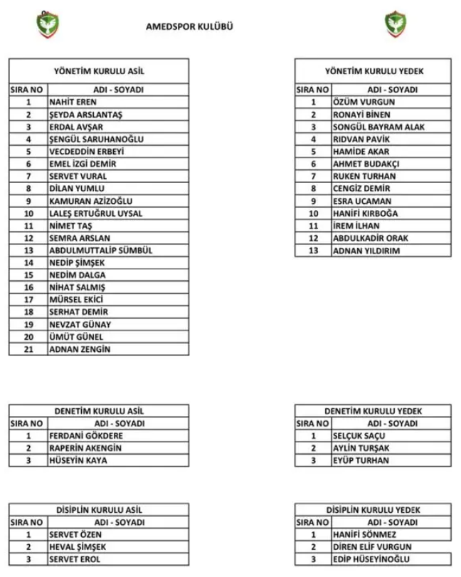 Yeni başkan Eren'in yönetim kurulu listesi şöyle: