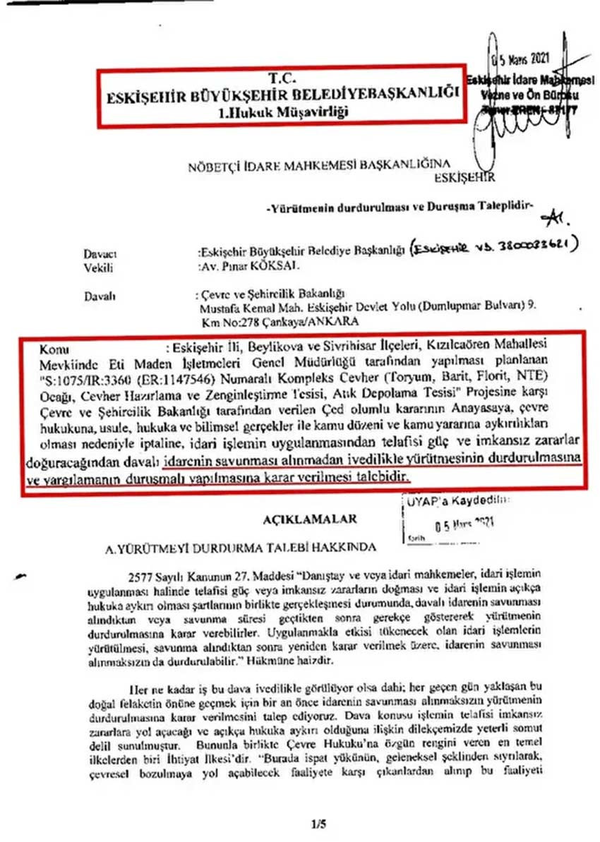 İşte CHP'li Eskişehir Büyükşehir Belediyesi'nin olumlu ÇED raporuna açtığı davalar