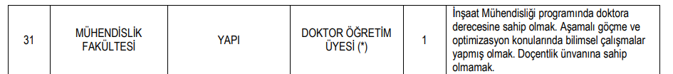 Mühendisliği Yapı Anabilim Dalı doktor öğretim üyesi kadrosu şartlarının bir