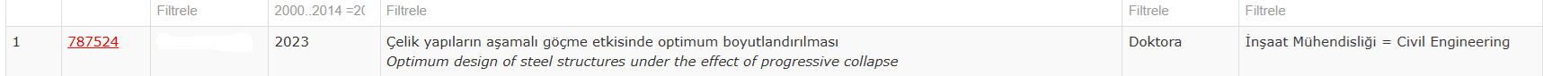 İlanda yer alan özel şartları Yükseköğretim Kurulu Tez merkezinde yaptığımız