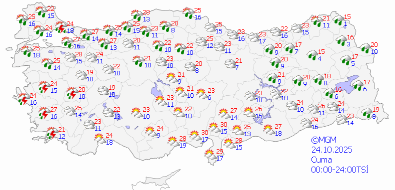 Cumartesi: Parçalı ve çok bulutlu, öğleden sonra ve akşam saatlerinde yer yer sağanak yağış bekleniyor.