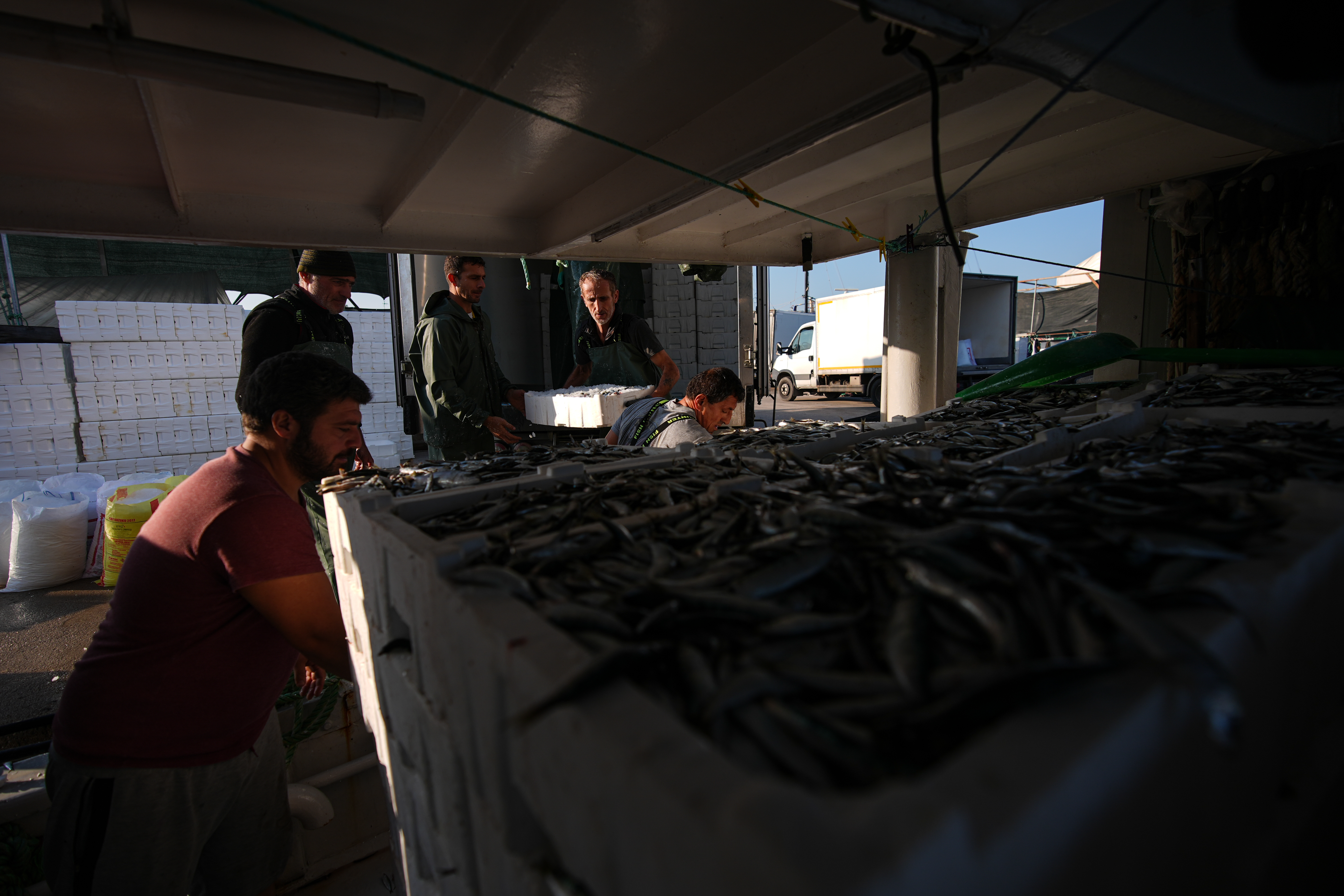 Taşımacılığa kıyasla daha ağır bir mesai sürdüren balıkçı tayfası, akşam saatlerinde denize açılan av gemilerinde işe koyuluyor. Ağları denize seren işçiler, takibini yaptıkları balığın teknelere alınmasını, ayrıştırmasını ve kıyıda kamyonlara taşınmasını yapıyor.