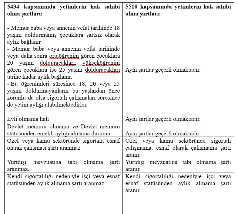 5434 Ve 5510 Kapsamında Kız Yetim Aylığı Şartlarındaki Önemli Farklılık
