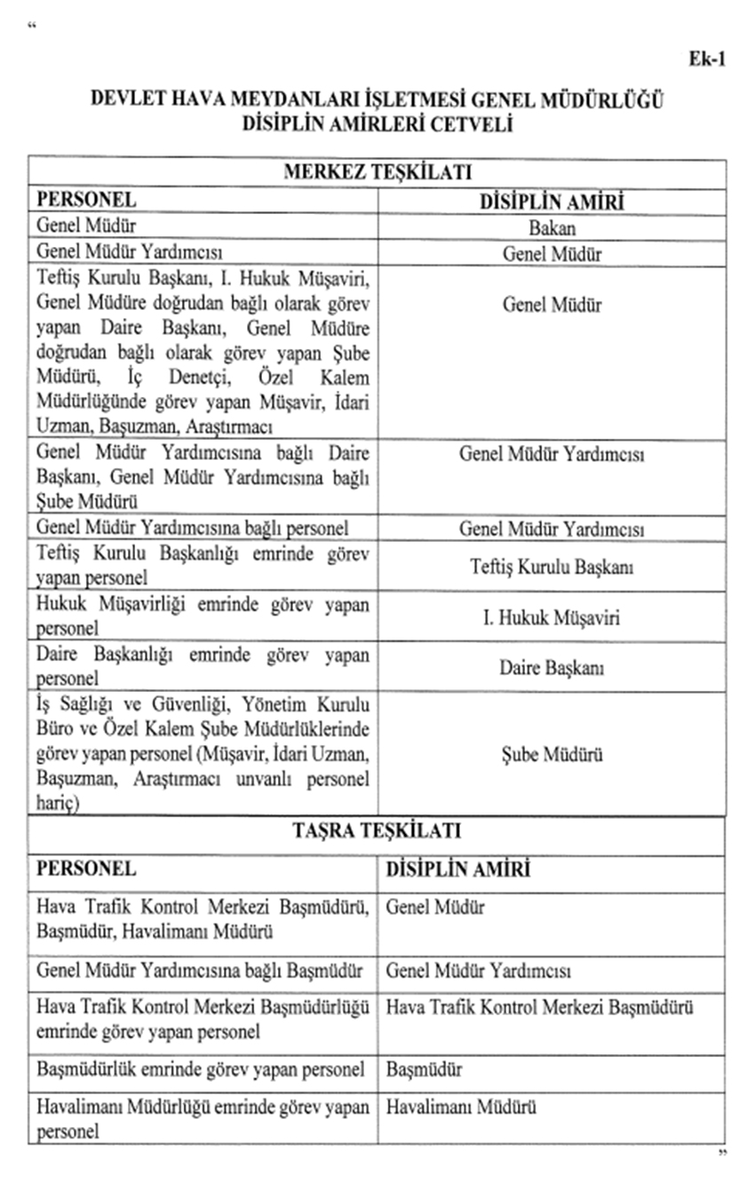 DEVLET HAVA MEYDANLARI İŞLETMESİ GENEL MÜDÜRLÜĞÜ DİSİPLİN AMİRLERİ YÖNETMELİĞİNDE DEĞİŞİKLİK YAPILMASINA