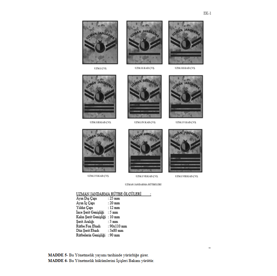 JANDARMA GENEL KOMUTANLIĞI KIYAFET YÖNETMELİĞİNDE