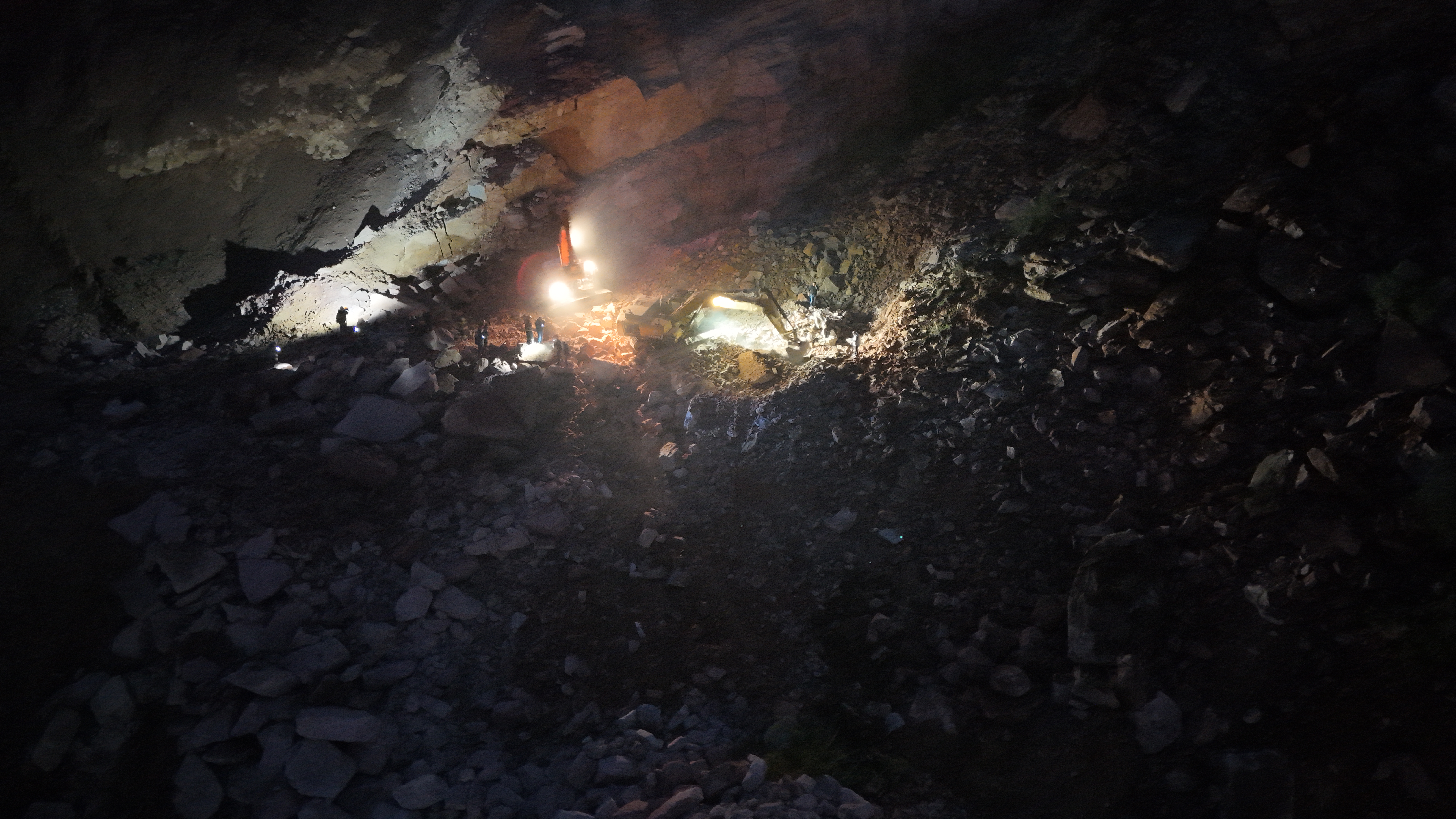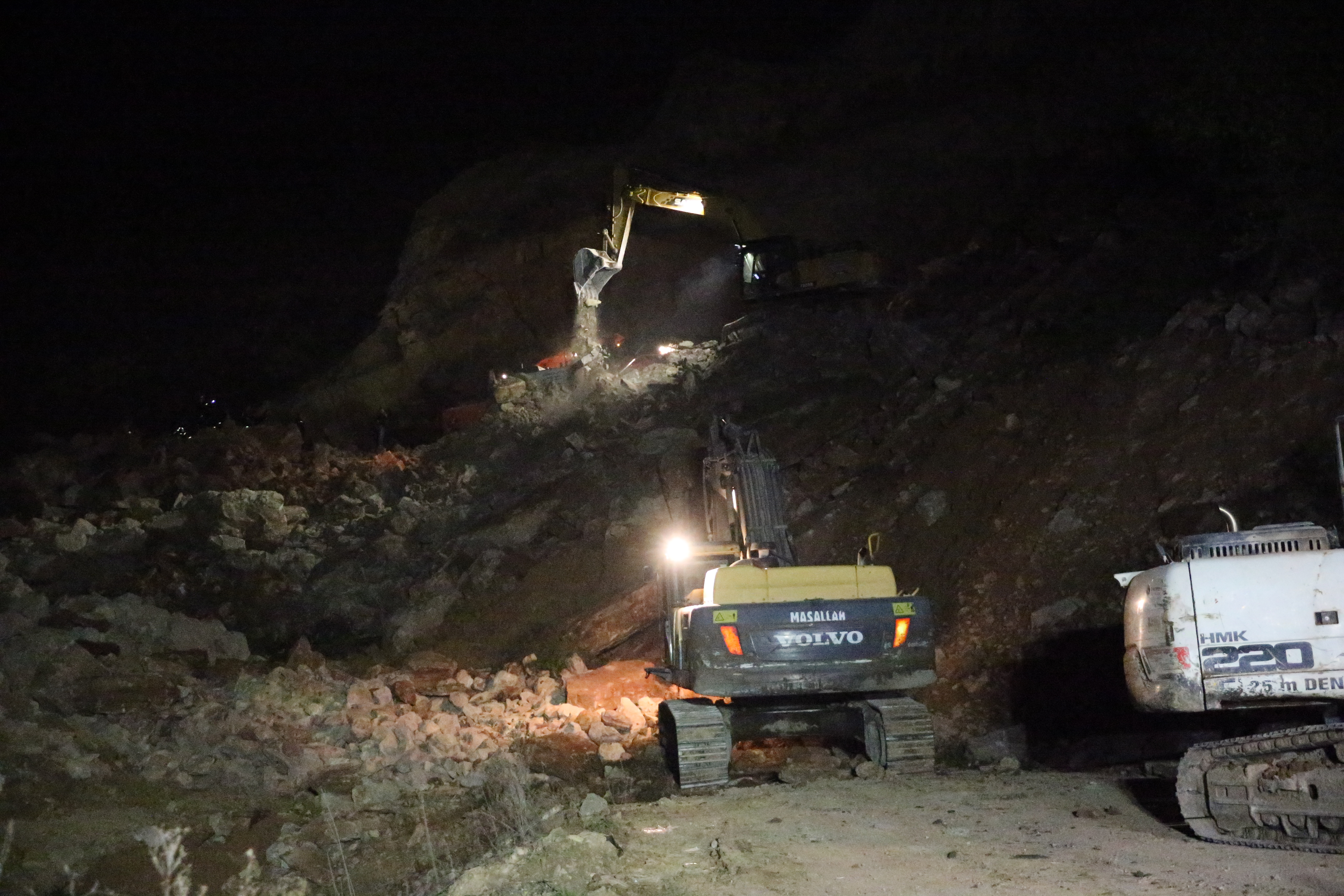 "Taş ocağında saat 12.00 sularında rutin işler kapsamında yapılan bir patlatma var. Ancak 16.30 sularında üst kotlardan bir kütle hareketi söz konusu. Şu anda kütlenin altında bir kamyon ve bir iş makinesi, sürücüsü ile operatörü bulunuyor. Şu anda burayı bilen arkadaşlarımızın tarif ettiği noktada çalışan iş makineleri var. Bu çalışmalara destek veren 20'ye yakın iş makinemiz var. AFAD, UMKE, jandarma ve 112 ekipleri burada."