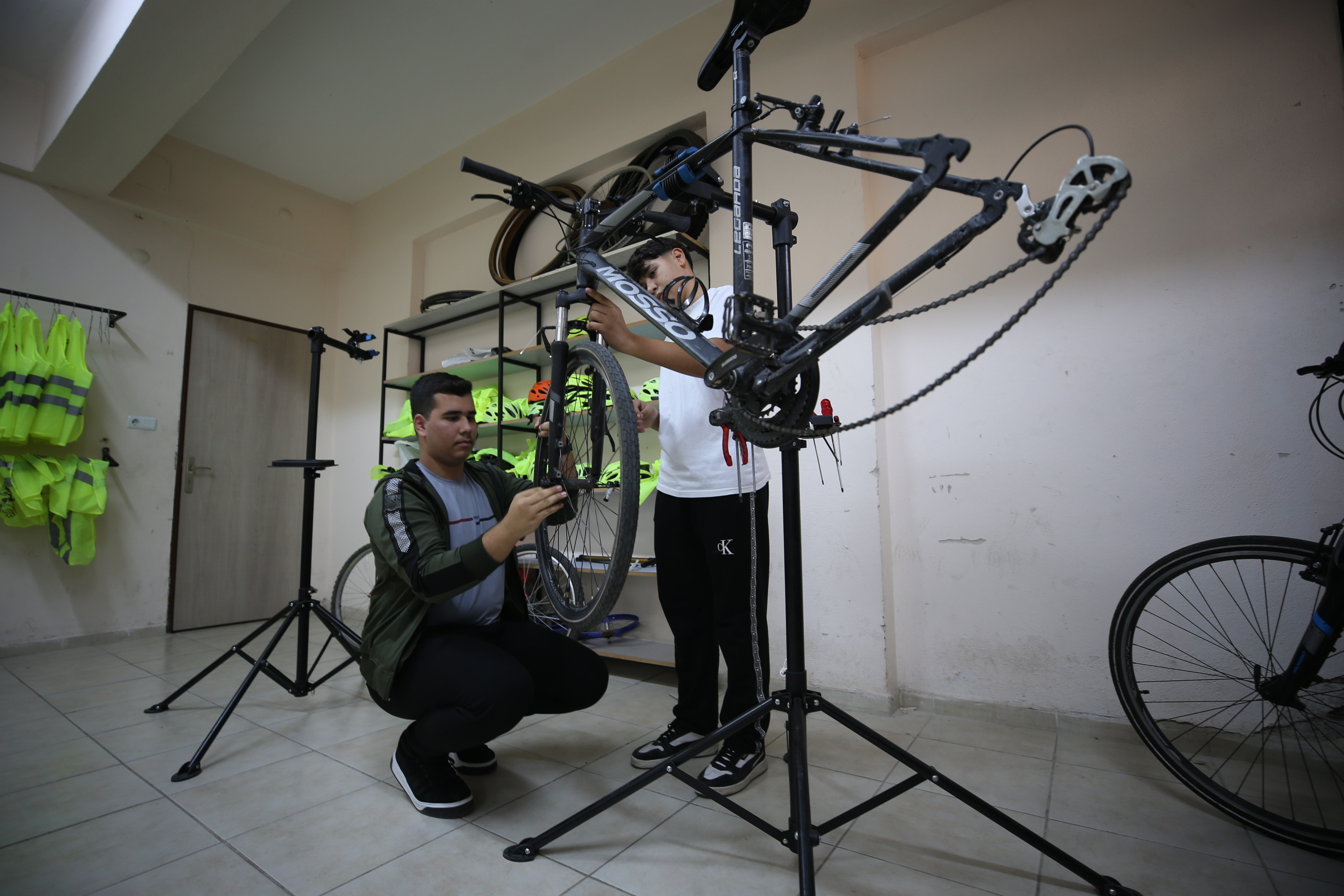 Atölye sorumlusu 12. sınıf öğrencisi Hafız Emir de uygun zamanlarda arkadaşlarının patlamış lastiklerini ve bozulmuş bisikletlerini tamir ettiğini dile getirerek, "Boş zamanımı telefonla oynayarak değerlendireceğime buraya gelip bisikletlerle çalışıyorum. Mahallemizde yakınlarda bisiklet tamir atölyesi olmadığı için dışarıdan gelen tamirleri ücretsiz karşılıyoruz." diye konuştu.