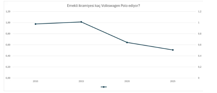 2020'de bu oran 0,64'e gerilerken, 2025'te ise 0,51'e geriliyor. 10 yılda otomobilin yarısı erirken, emekli ikramiyesiyle aracın ancak yarısı alınabiliyor.