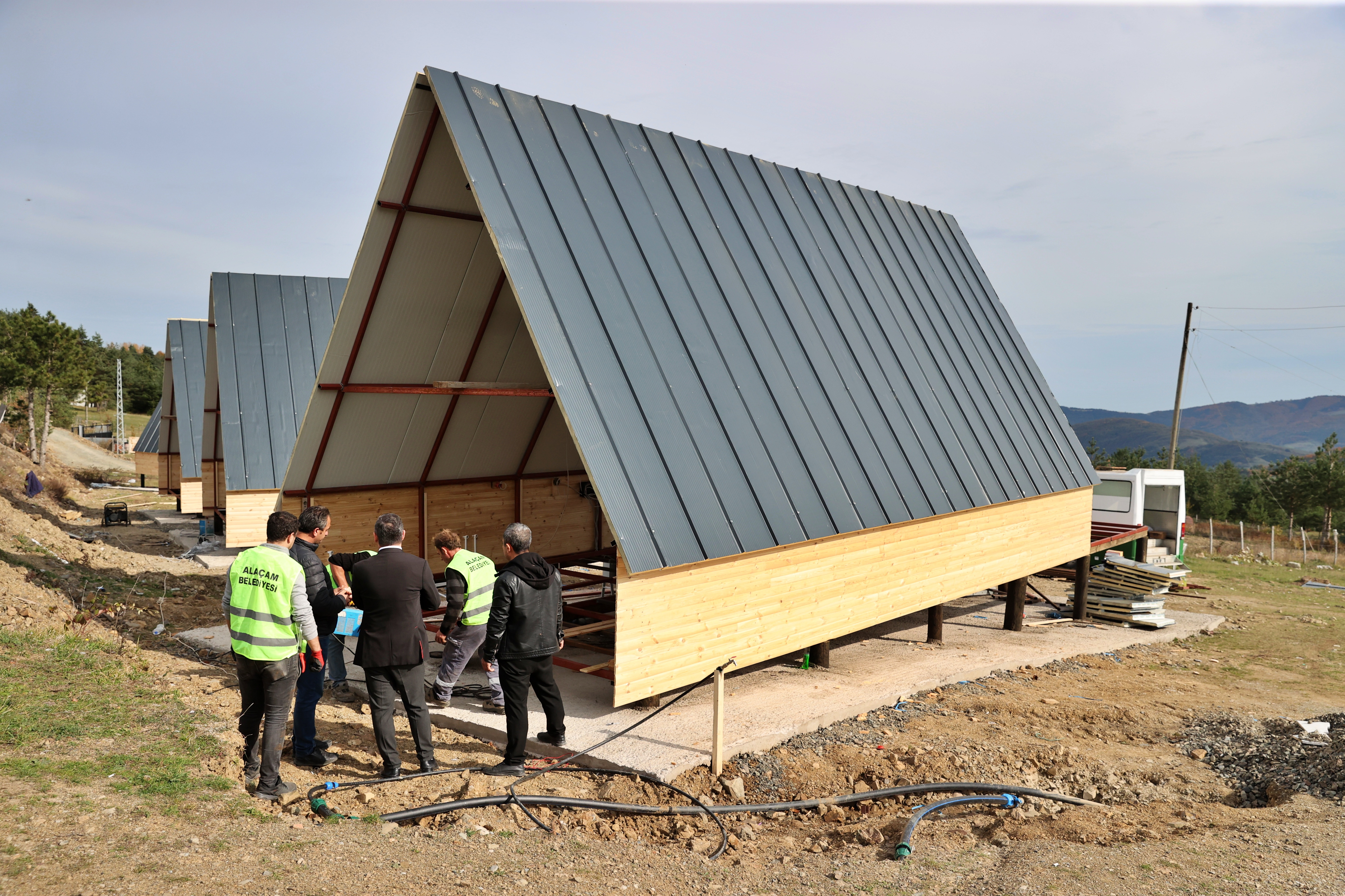 Orman varlığı ile öne çıkan 25 bin nüfuslu küçük bir ilçe olan Alaçam'da belediye, kendisine kaynak sağlamak için 5 bin metrekarelik belediye şantiyesi içine bungalov üretim tesisi kurdu.