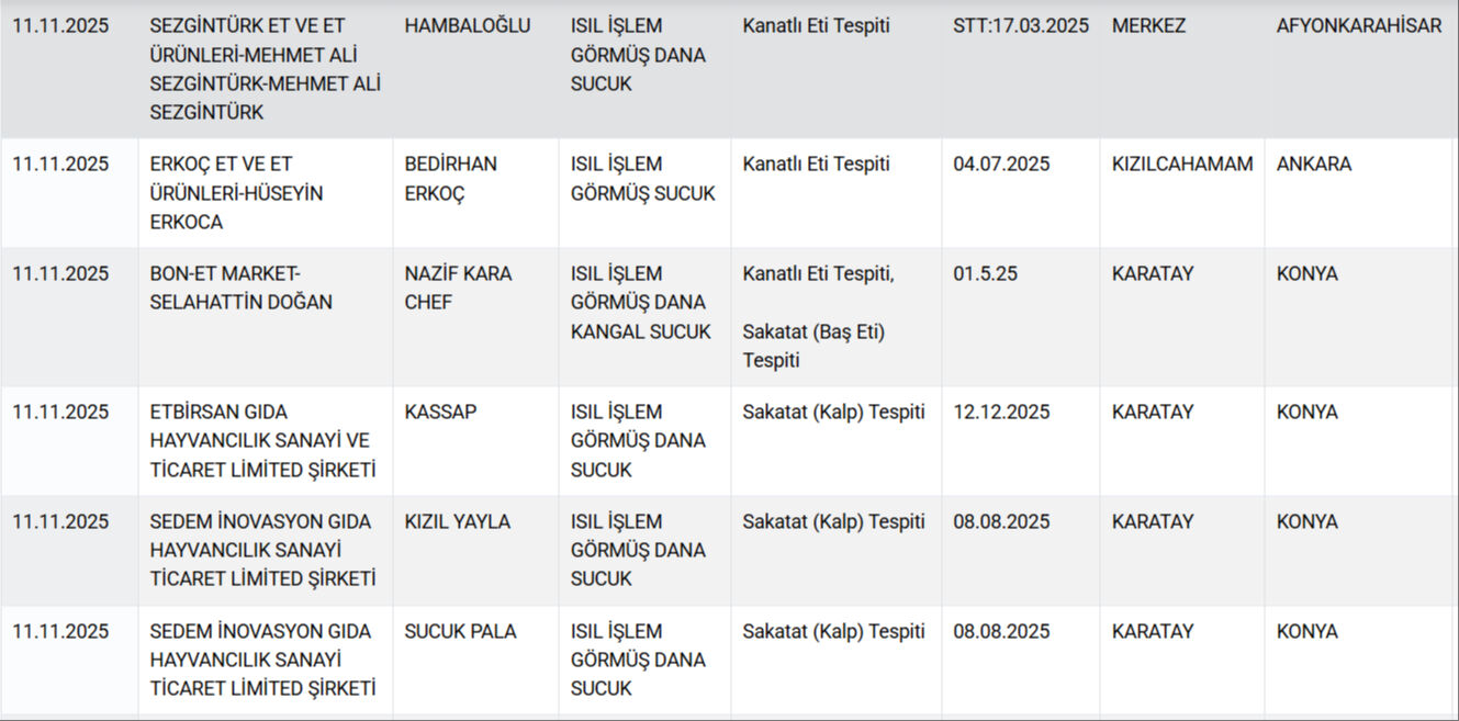 Tarım ve Orman Bakanlığı, gıdada hile yapan firmaların listesini bir kez daha güncelledi. Listenin en mide bulandıran detayı, vatandaşa sucuk yerine at ve eşek eti yedirilmesi oldu. İşte gıdada hile yapan firmalar ve ürünleri...