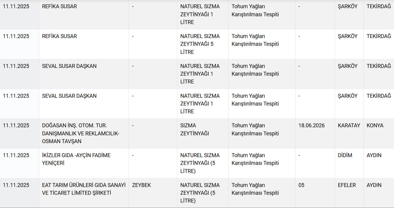 Tarım ve Orman Bakanlığı, vatandaşın sağlığını hiçe sayan firmalara savaş açmış durumda. Bu kapsamda Türkiye genelinde 81 ilde denetimler devam ediyor. Yapılan kontroller sonucunda uygunsuzluk tespit edilen ürünler ve markaları kamuoyu ile paylaşılıyor.