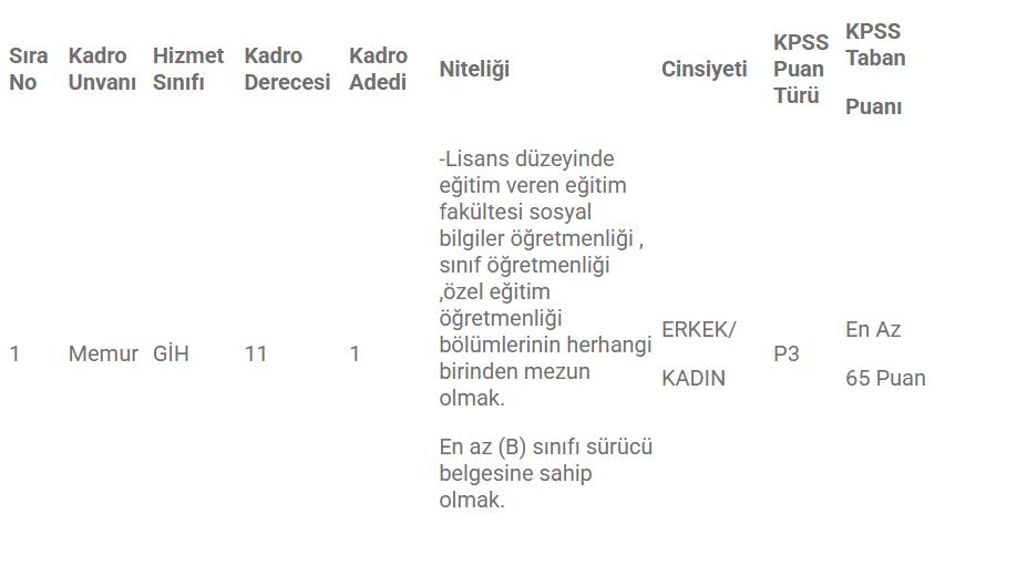 için özellikle büroda görev yapan kadrolara yönelik ilan şartlarında eşyanın
