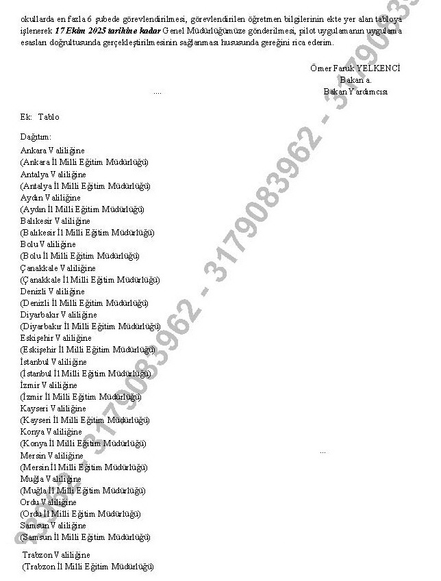 Milli Eğitim Bakanlığı Temel Eğitim Genel Müdürlüğü 03.10.2025 tarih ve 142491739 sayılı yazılarıyla 18 pilot ilde "Okul Öncesi Eğitim Kademesinde Branş Öğretmeni Görevlendirilmesi" yapılacağını bildirdi.
