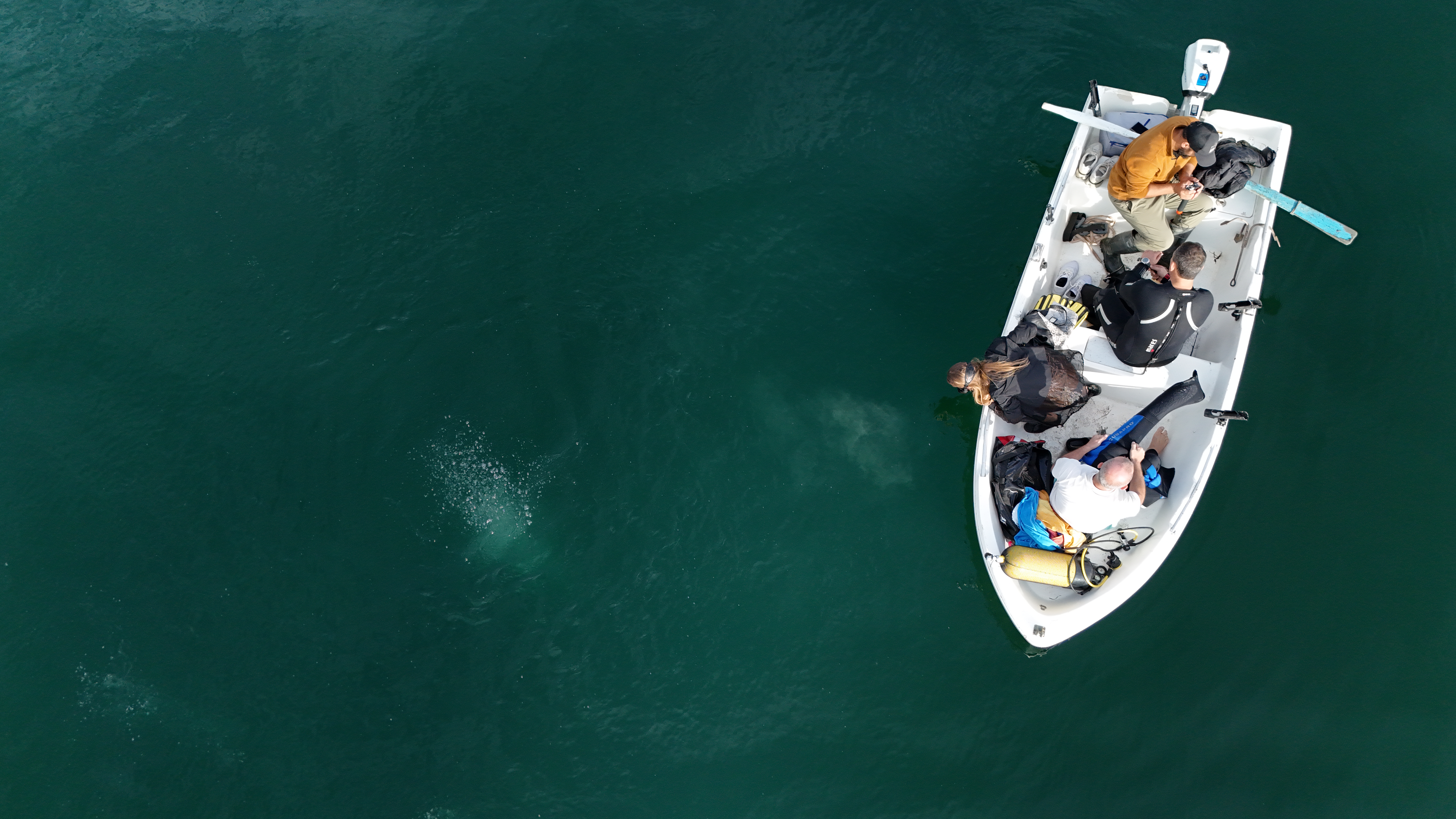 Kayıkla suya açılan Utkucu ve dalgıçlar, kıyıdan yaklaşık 300 metre ileride birkaç noktada oluşan kabarcıkların olduğu alanda inceleme yaptı.