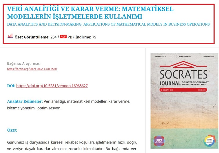 "veri analitiğinde matematiksel modellerin işletmelerde kullanımı" konusunu açık kaynakta arattığımızda, doğrudan bir adayın bu başlıkta bir makale yayımladığını ne yazık ki görmekteyiz.
