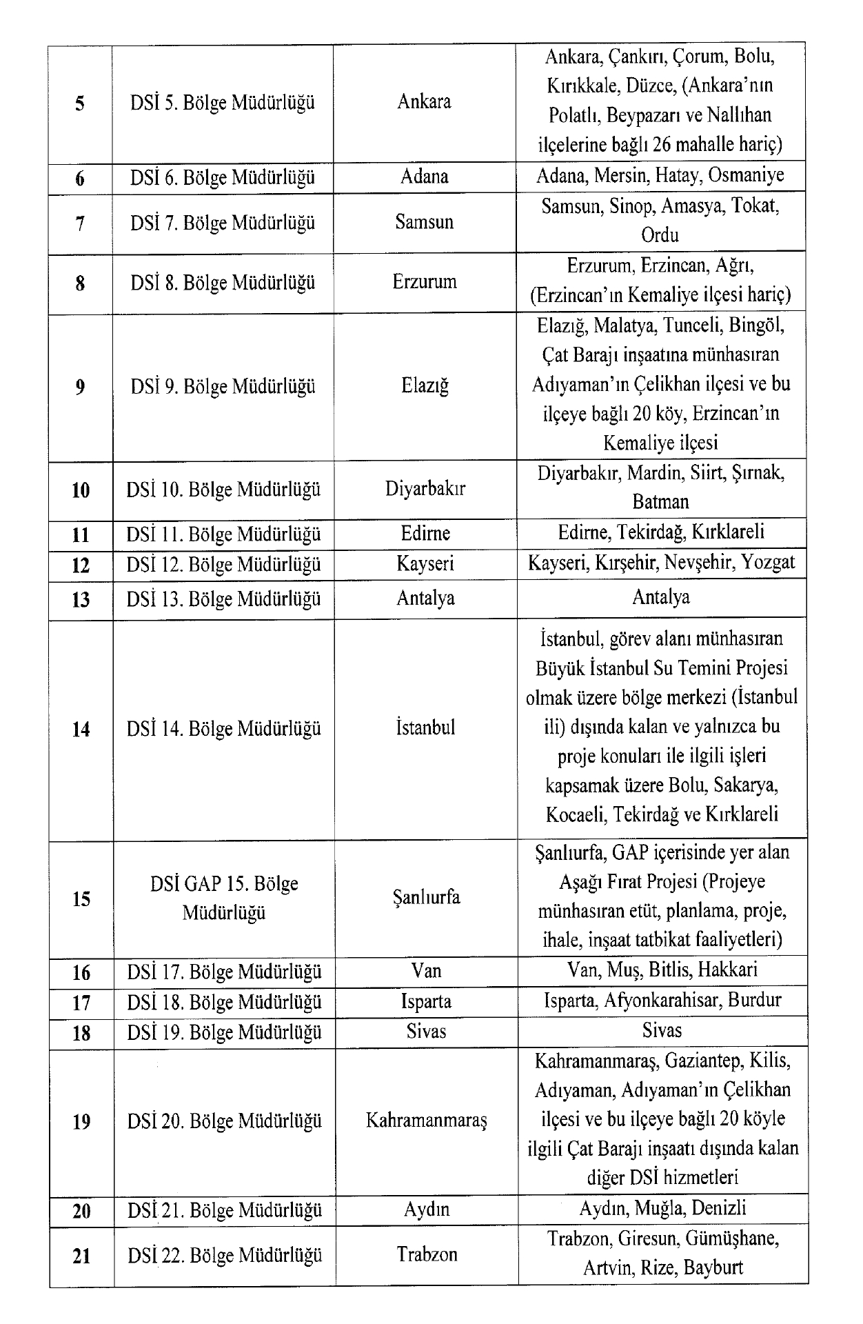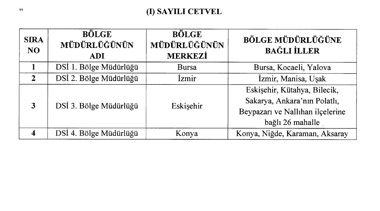 "(3) Genel Müdürlüğün taşra teşkilatı bu bölüme ekli (I) sayılı Cetvelde gösterilen bölge müdürlüklerinden oluşur. Bakanlık tarafından bölge müdürlüklerine bağlı şube müdürlükleri, başmühendislikler ile bunlara bağlı şeflikler ve mühendislikler kurulabilir."